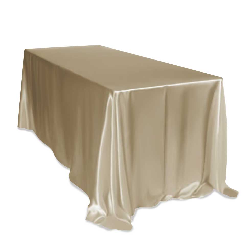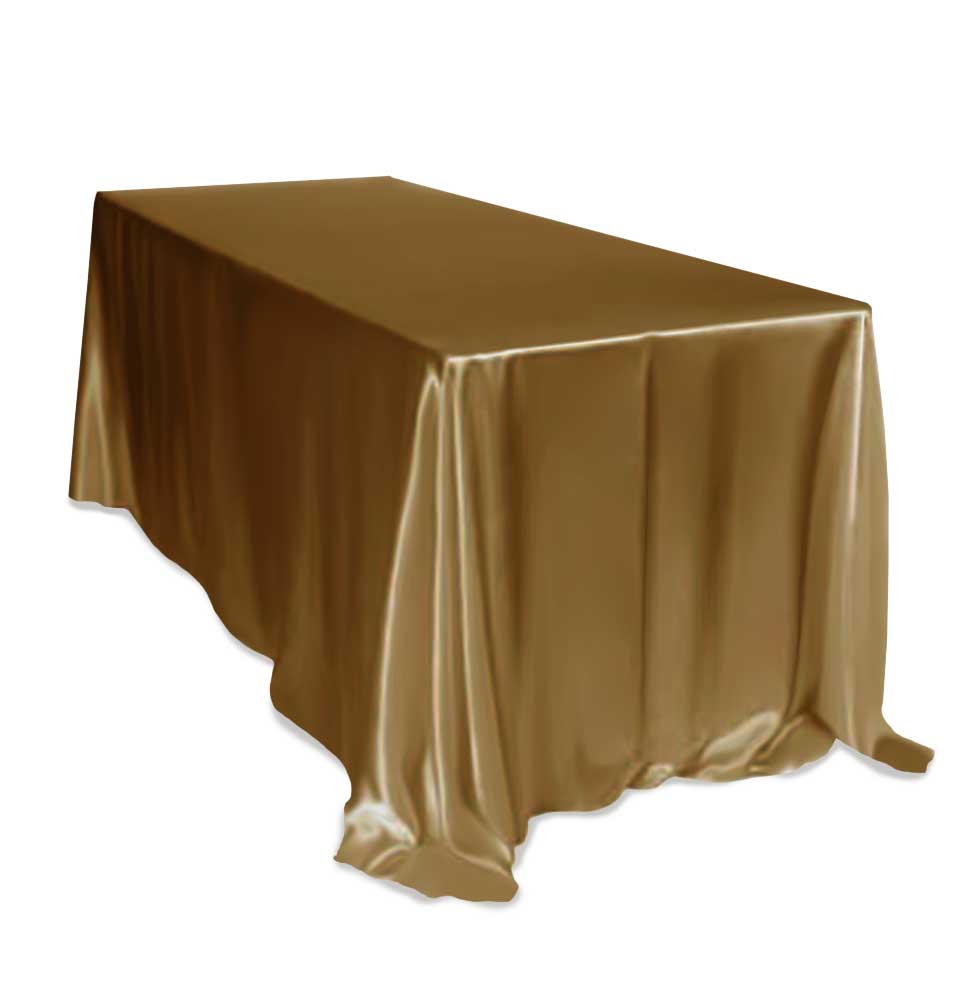 ผ้าคลุมโต๊ะสีทองมันเงาช่วยเสริมบรรยากาศภายในงาน ให้ดูหรูหรามีระดับ