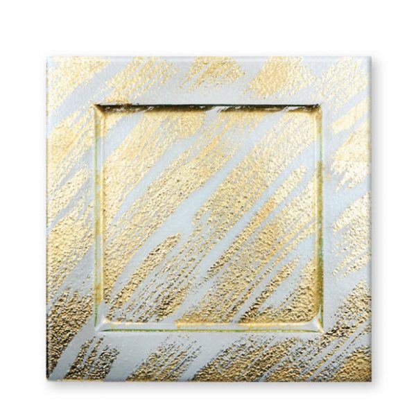 Charger Plate ทรงสี่เหลี่ยมเนื้อแก้วคุณภาพสูง ที่ถูกออกแบบให้ดูหรูหราเป็นพิเศษ ด้วยเลื่อมสีทองเป็นประกาย สวยงามโดดเด่นเมื่อยามต้องแสงไฟ ช่วยเสริมบรรยากาศของการรับประทานอาหารให้หรูหราและอบอุ่นมากยิ่งขึ้น