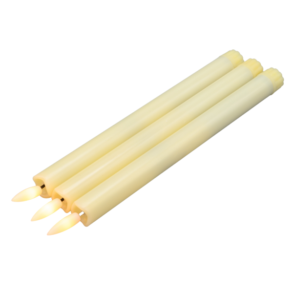 เทียนแอลอีดี แบบแท่งยาวเนื้อเทียนทำจากขี้ผึ้งพาราฟิน ให้แสงสีเสมือนเทียนจริง ใช้ร่วมกับเชินแบบต่างๆ เหมาะสำหรับประดับตกแต่งโต๊ะอาหาร หรือใช้สำหรับงานดินเนอร์ใต้แสงเทียน