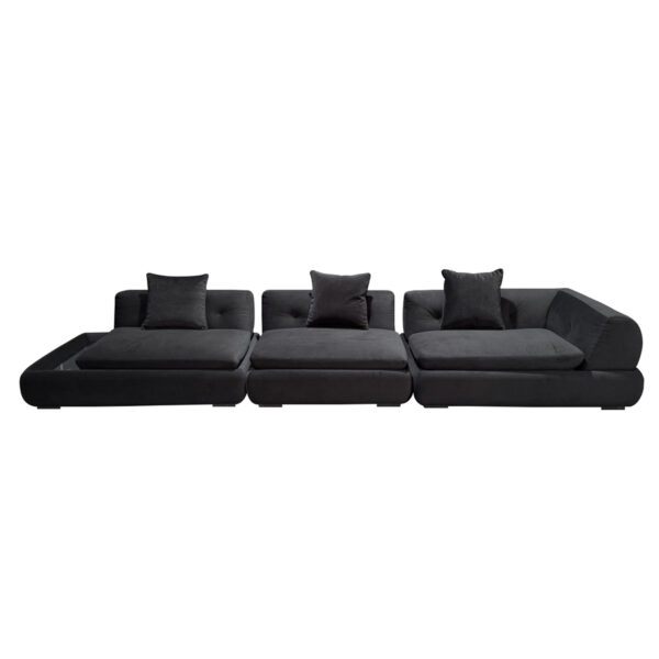 โซฟาสีดำดีไซน์โมดูลาร์สุดหรู นุ่มสบายราวกับลอยอยู่บนก้อนเมฆกลางรัตติกาล เหมาะสำหรับเพิ่มบรรยากาศหรูหราและผ่อนคลายในทุกงานอีเวนต์