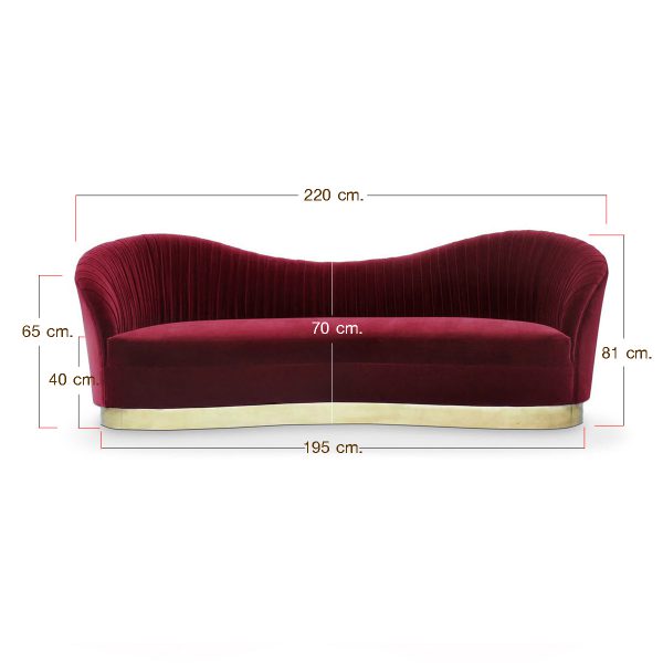 โซฟายาวดีไซน์สวยหรู รูปทรงโค้งโอบนั่งสบาย เบาะหนานุ่มบุผ้ากำมะหยี่อย่างดี เสริมด้วยลูกเล่นของเส้นริ้วงดงาม ฐานสีทอง เสริมบรรยากาศของความหรูหราให้กับทุกการจัดงาน เหมาะสำหรับใช้รับรองแขกคนสำหรับในงานสังสรรค์ยามค่ำคืน